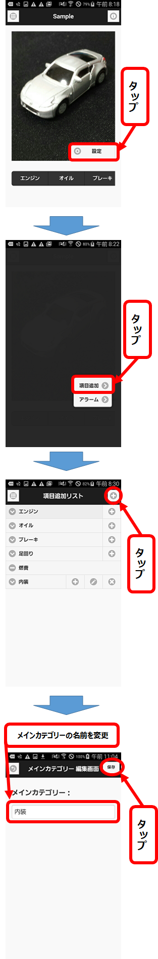 - 入力項目名を変更し、「保存」ボタンをタップします。