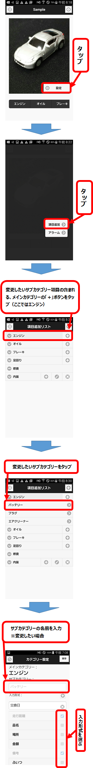 - 変更したいサブカテゴリをタップします。