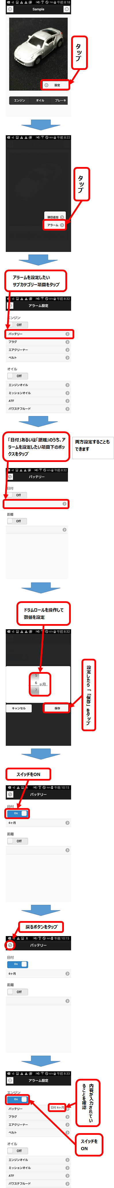 - 日付と走行距離どちらでアラームセットするかは選べます。