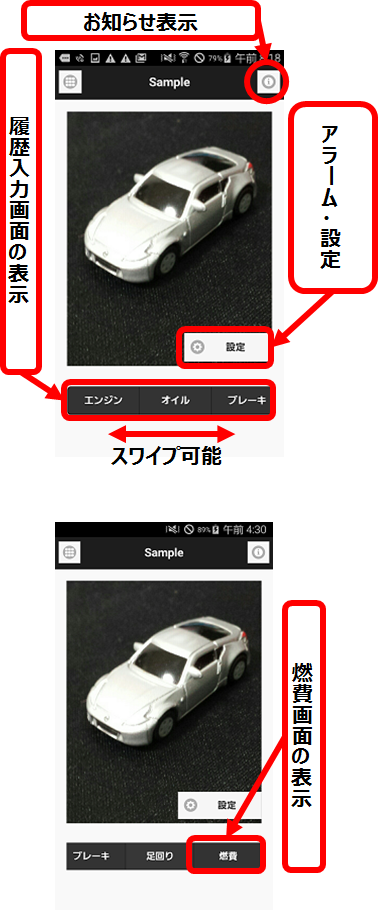 また燃費画面の各操作を以下で説明します。